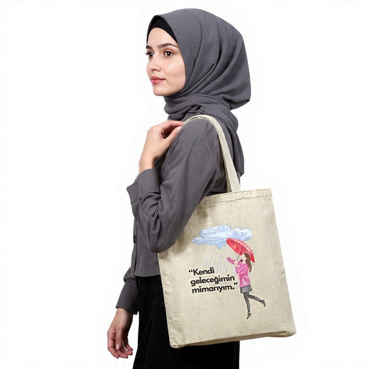 Sonbahar & Kadın Temalı DTF Baskılı Çanta – %100 Pamuk