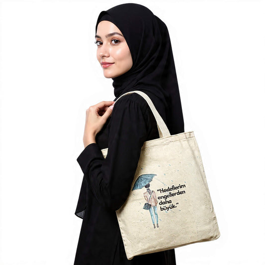 Kadın Temalı DTF Baskılı Omuz Çantası – %100 Pamuklu