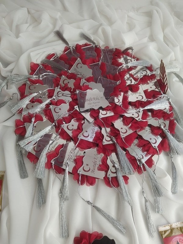 - El plexiglás de la bandera turca está decorado con una "flor de tul" y una "borla".