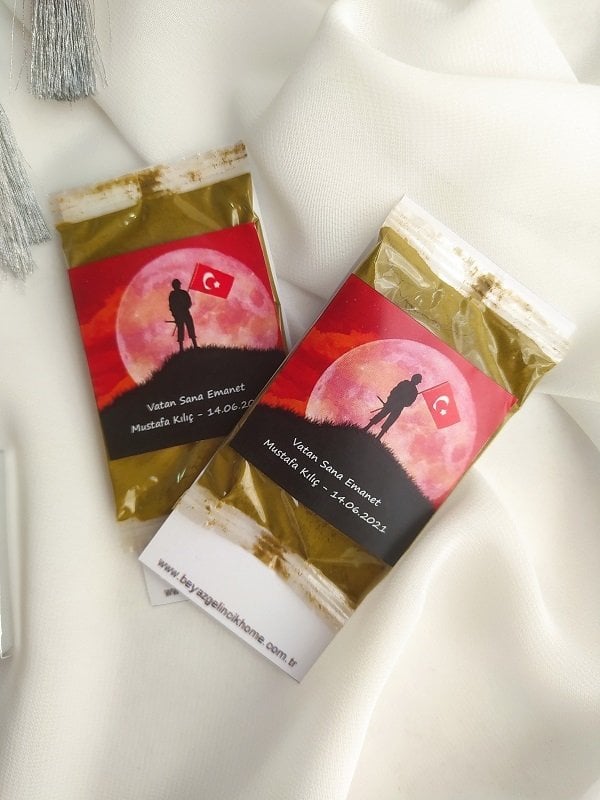- Contenido de la caja; Hay un soldado personalizado con henna y un regalo personalizado de plexiglás con la bandera turca.