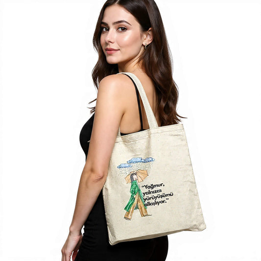 Sonbahar & Kadın Temalı DTF Baskılı Çanta – %100 Pamuk